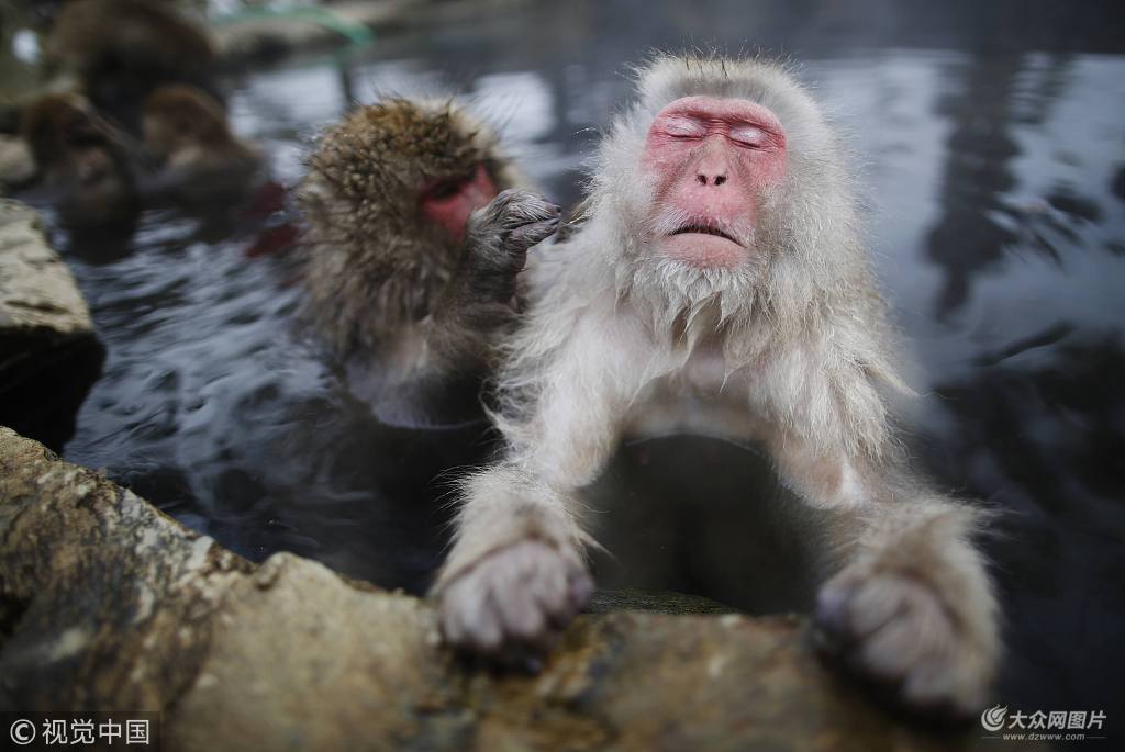 當地時間2014年1月20日,日本Yamanouchi ,雪猴泡溫泉對抗嚴寒。