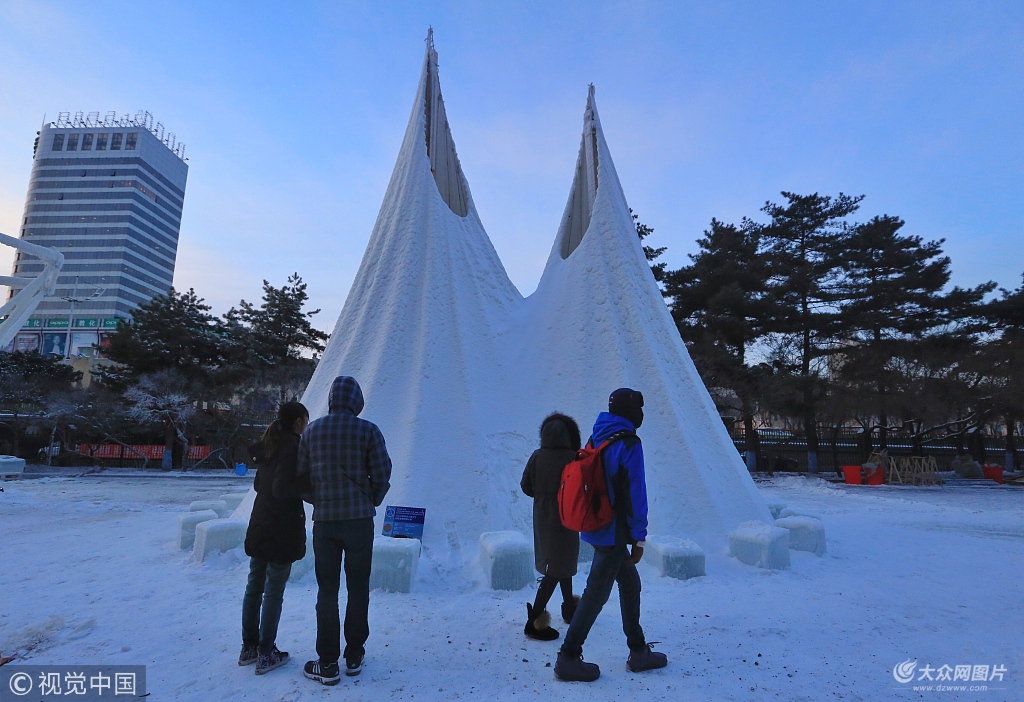 2018年12月22日,在哈爾濱工業大學校區內,冰雕、雪構、膜結構冰雪景觀遍布校園,使哈工大成為名副其實的冰雪校園。圖片作者:視覺中國