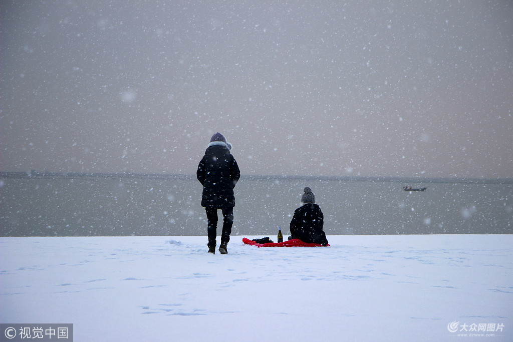 2019年1月1日,新年第一天,山東威海迎來降雪,雪花飄飄,市民紛紛外出踏雪、賞雪景,給元旦假期增添了生機和樂趣。