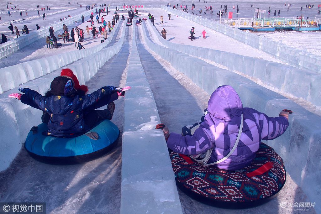2019年1月6日,哈爾濱,松花江上冰雪娛樂項目吸引很多游客,也是孩子歡樂的世界。