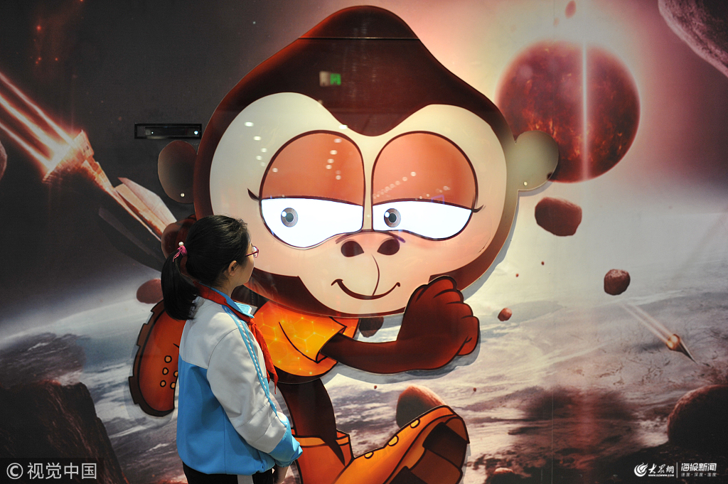 2019年1月23日,一名青島洛陽路第一小學(xué)的學(xué)生在“冬令營”體驗“眼球跟蹤”科技趣味活動。