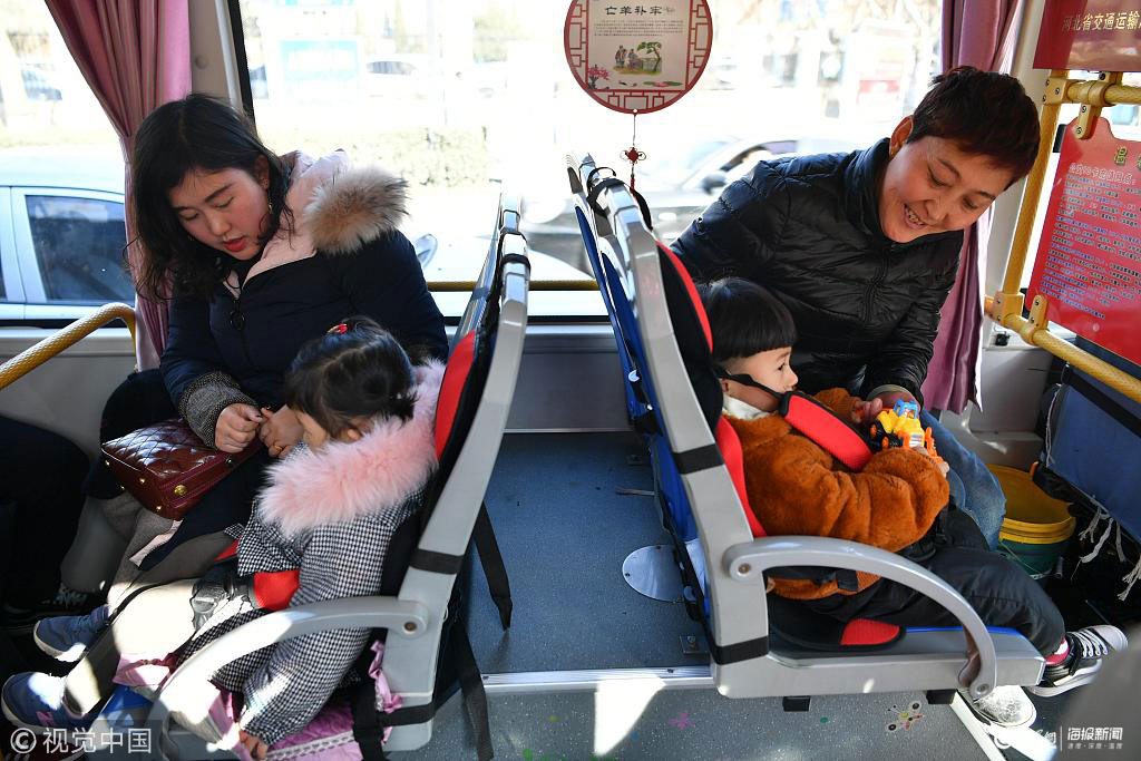 2019年2月1日,河北邯鄲26路公交車,小乘客坐在“兒童安全座椅”上。據(jù)邯鄲公交工作人員介紹,為了給小乘客提供更溫馨的人性化服務(wù),目前,邯鄲26路線上所有的公交車都已配備了這種安全座椅,讓寶寶們出行更舒適、更安全。