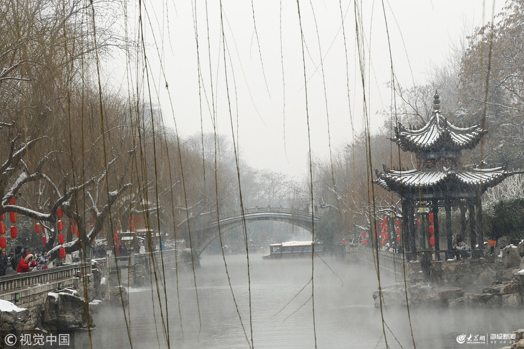 濟南:雪后護城河霧氣繚繞 宛如仙境