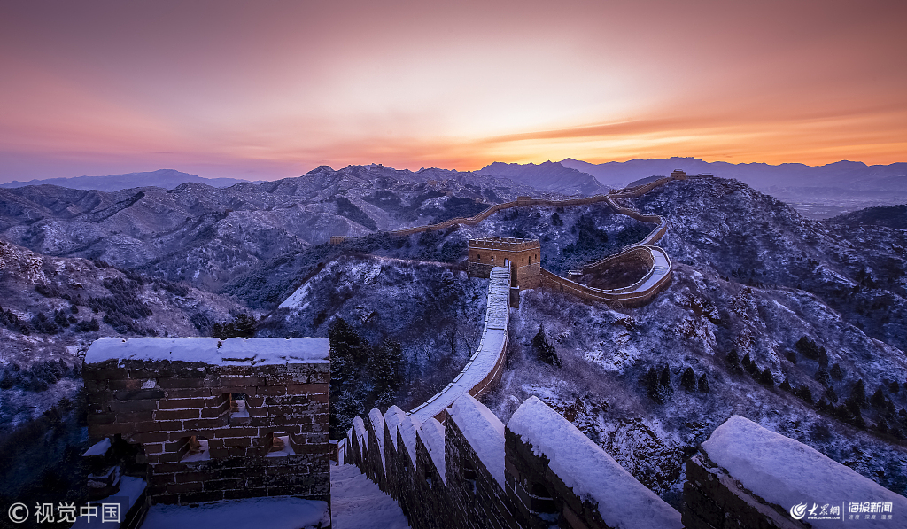 航拍雪后金山嶺長城 銀裝素裹分外妖嬈