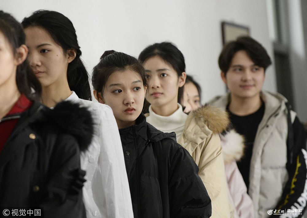 2019年2月18日,北京,中央戲劇學院藝考復試現場,眾多考生提前來到中央戲劇學院門口等待考試開場。