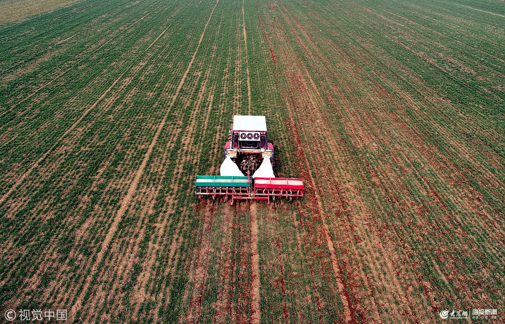 2019年2月28日,早春時節,山東省臨沂市郯城縣農民忙著加強麥田管理,追施小麥返青肥,為夏糧豐收打基礎。