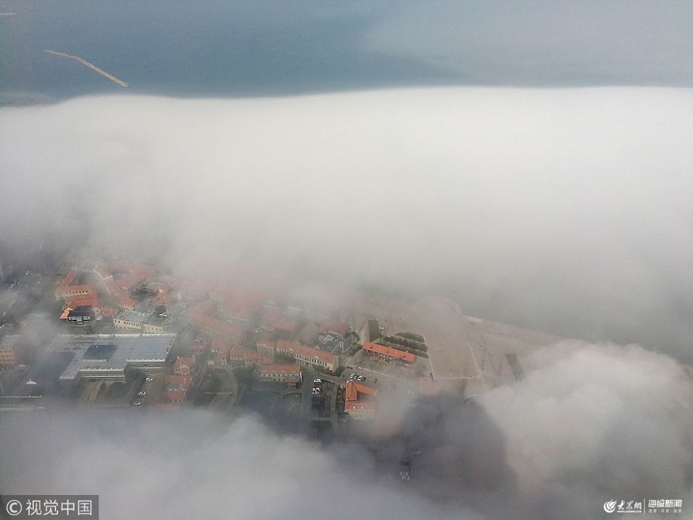 煙臺被平流霧籠罩 城市若隱若現