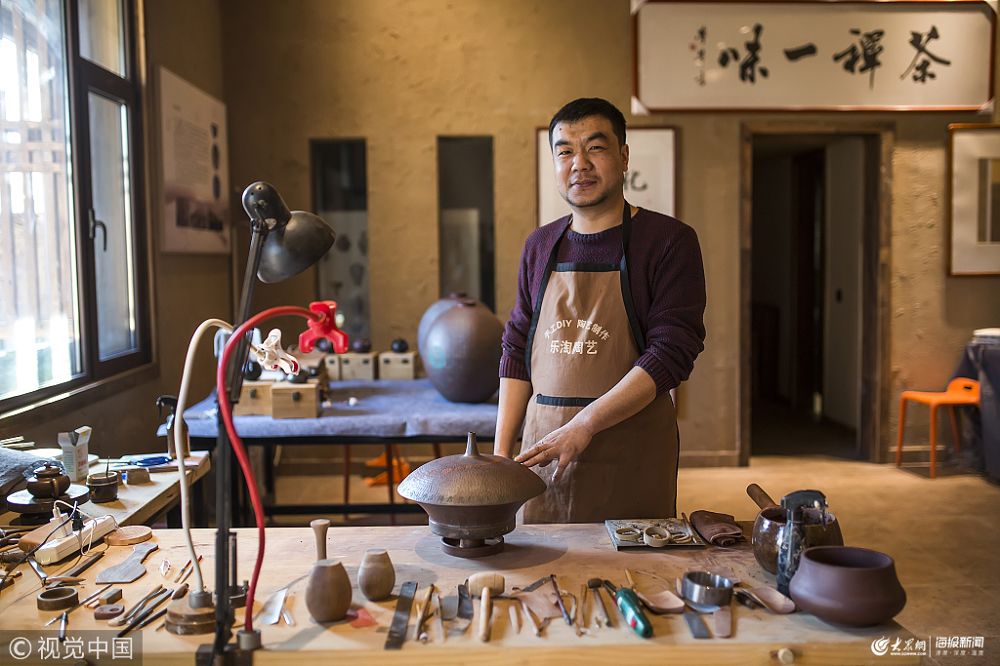 2019年3月13日,山東濱州。今年36歲的王超因為喜愛陶瓷和紫砂壺,不顧家人的反對,放棄工作專職從事陶瓷和紫砂壺的制作。王超用時5個月創作了兩個中華基因紫砂瓶,刻繪了可識讀的甲骨文字2606個。