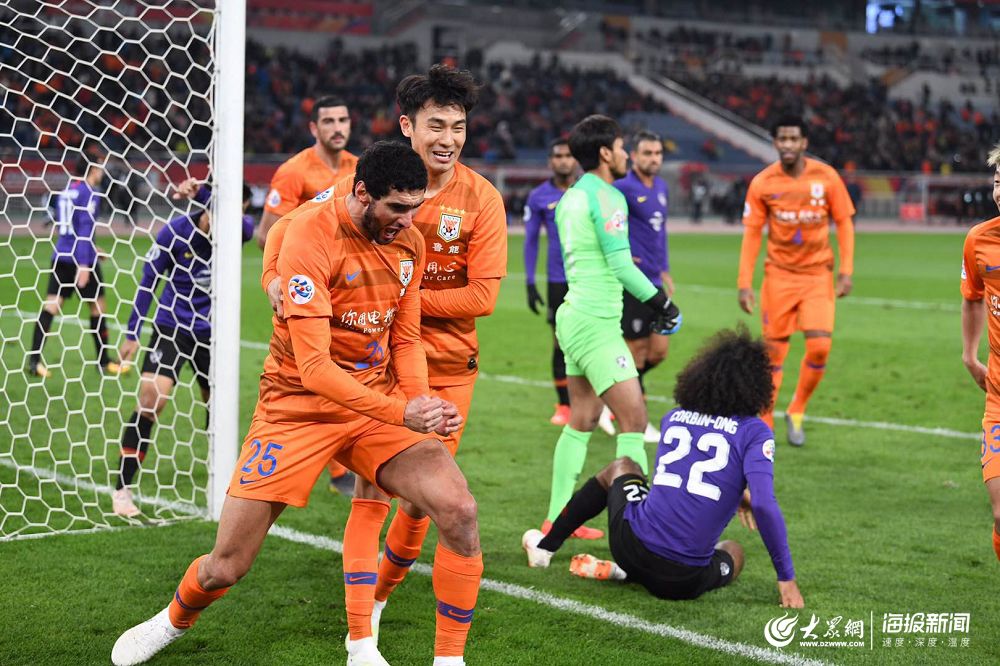 大眾網·海報新聞4月9日訊(記者 王濤)今晚,2019賽季亞冠E組第3輪一場比賽在魯能大球場展開角逐,山東魯能迎戰柔佛DT。上半場魯能占盡優勢,首先費萊尼利用角球機會頭球打破僵局,隨后佩萊制造點球并親自操刀命中。易邊再戰,柔佛球員薩法維打進世界波,終場前卡布雷拉定位球打門擊中橫梁,魯能逃過一劫。最終魯能在主場2-1險勝柔佛DT,取得本賽季亞冠首勝。