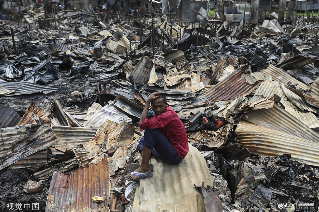 當地時間2019年8月17日,孟加拉國達卡,當地一貧民窟發生火災。圖片作者:Newscom/視覺中國
