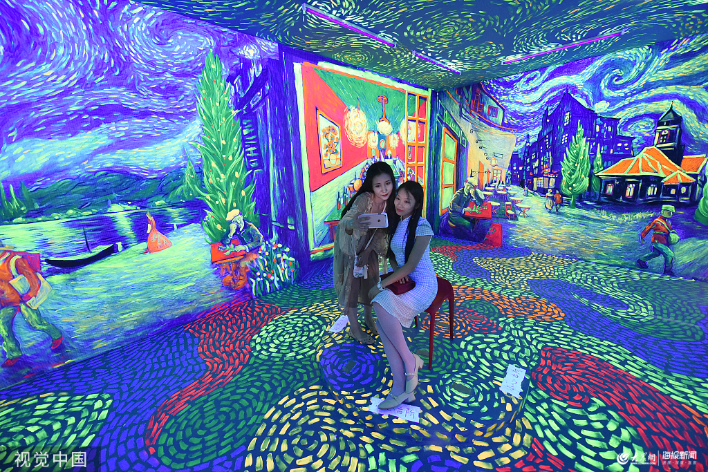 2019年8月17日,山西省太原市,一家名為梵高星空藝術館吸引了不少青年前來參觀體驗。