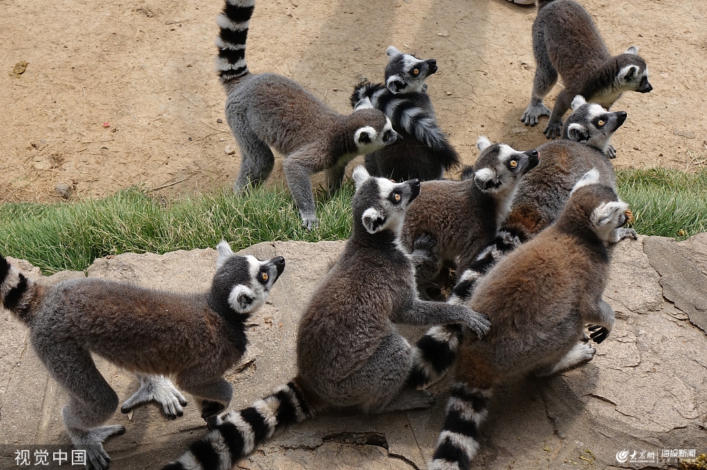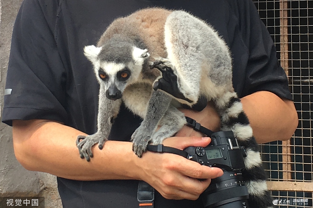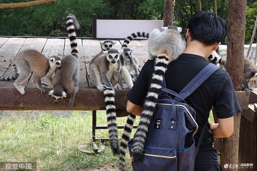 青島:環尾狐猴與游客零距離接觸 場面諧趣橫生