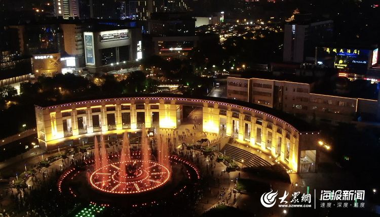 燈光亮起,泉城廣場噴泉隨音樂舞動