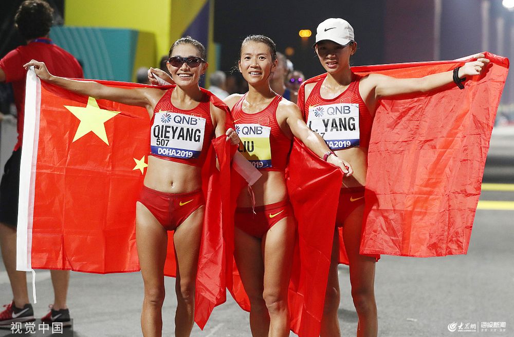 今天,在2019多哈田徑世錦賽女子20公里競走決賽中,中國隊包攬前三名!現世界紀錄保持者、媽媽級選手劉虹以1小時32分53秒獲得冠軍;名將切陽什姐獲得亞軍,楊柳靜獲得季軍。遺憾的是,衛冕冠軍楊家玉在最后階段罰下。田徑世錦賽的領獎臺,中國隊承包了!