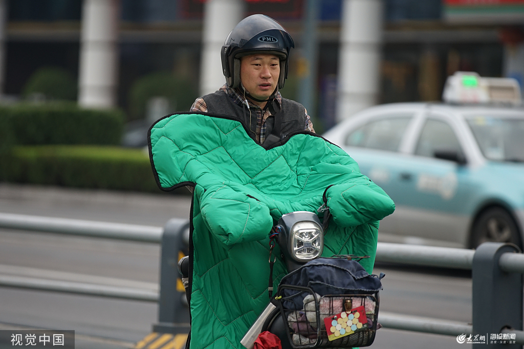 2019年10月7日,國慶假期最后一天,在經歷一夜的降水后,濟南氣溫驟降到9度。在濟南濼源大街街頭,不少市民都選擇羽絨服、沖鋒衣等冬裝出行,將自己裹得嚴嚴實實。