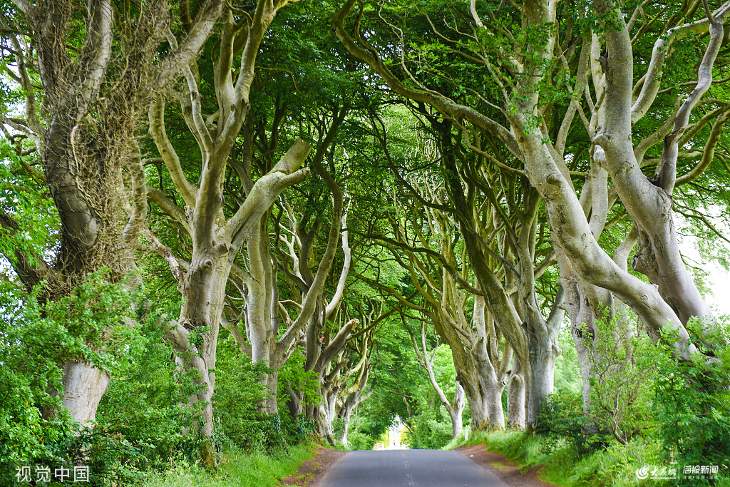 位于北愛爾蘭小鎮(zhèn)巴利莫尼(Ballymoney)附近的黑暗樹籬(The Dark Hedges)風光。此處是英劇《權(quán)力的游戲》中國王大道的取景地,因此迅速走紅,成為北愛爾蘭最具知名度的景點,被很多旅游媒體評為世界十大最美樹木隧道之一。黑暗樹籬這條鄉(xiāng)間小道種植著150多株山毛櫸樹,從18世紀種下,距今已經(jīng)300多年。