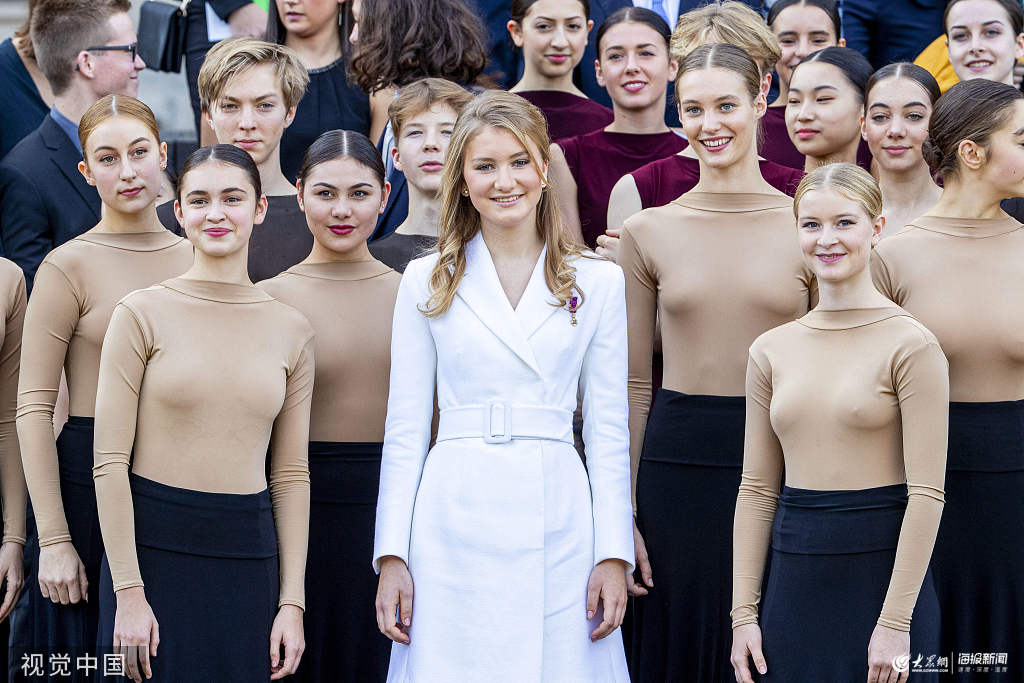 當地時間2019年10月25日,比利時布魯塞爾,綜合英國《每日郵報》及比利時《布魯塞爾時報》報道,當日伊麗莎白公主的18歲慶生儀式在布魯塞爾王宮舉行,王室成員、政要以及和公主一樣在2001年出生的80名年輕人等受邀參加,現場還有芭蕾舞和歌唱表演。整場儀式還在比利時3個最大的電視頻道進行了現場直播。圖片作者:Olivier Matthys/視覺中國