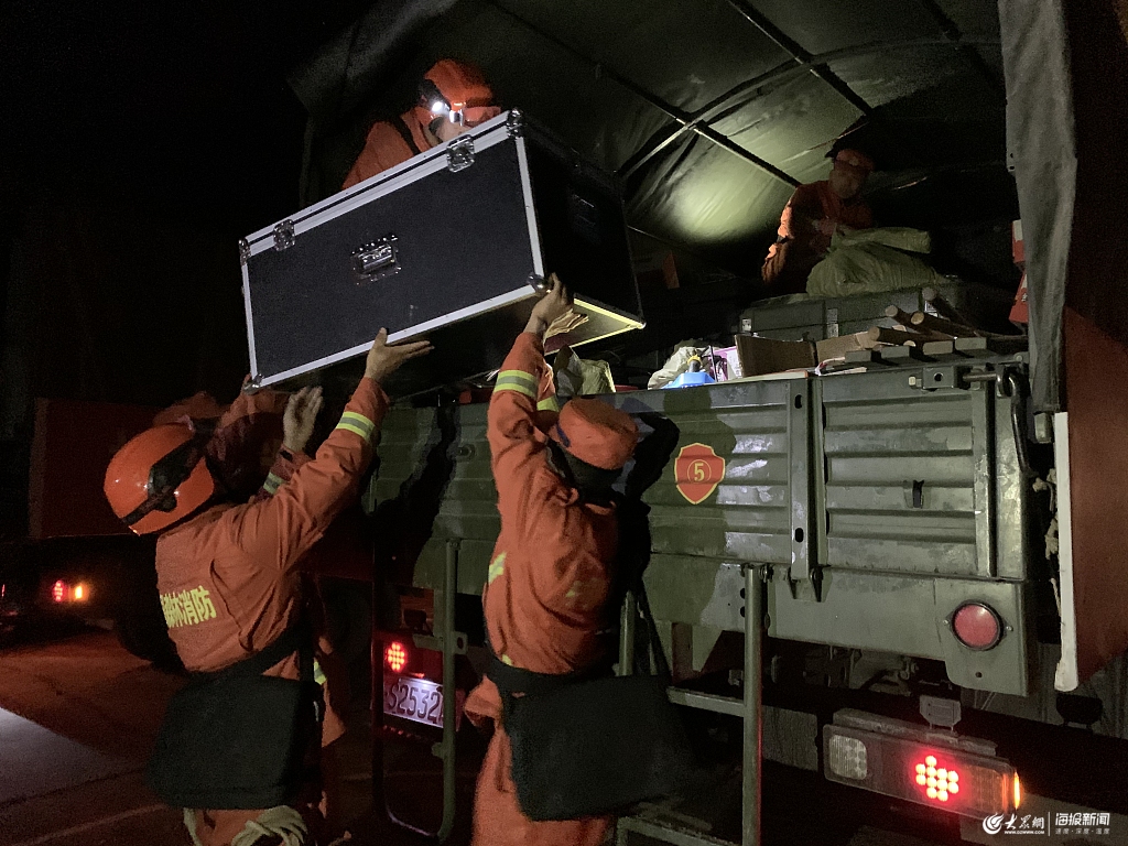 2019年10月28日,甘肅甘南,地震發(fā)生后,甘肅省森林消防總隊(duì)隴南支隊(duì)迭部大隊(duì)在迭部營區(qū)準(zhǔn)備物資,集結(jié)。
