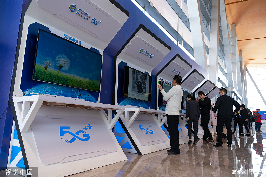 陜西省西安市,2019全球硬科技創(chuàng)新大會(huì)揭幕,中國(guó)移動(dòng)5G體驗(yàn)區(qū)。