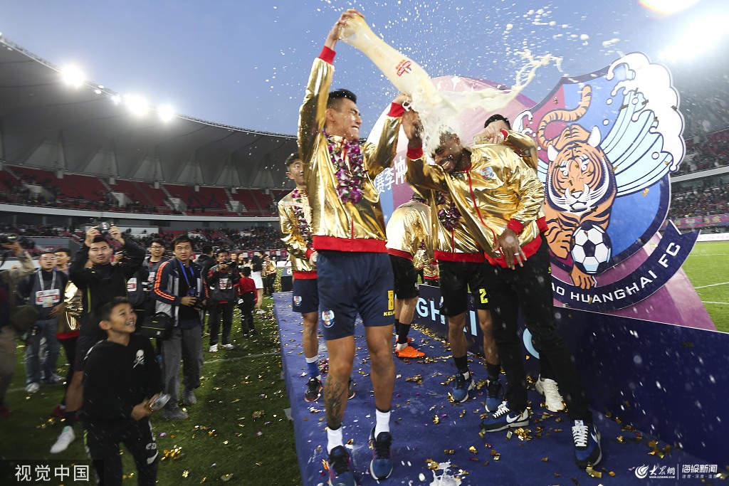 2019年11月2日,山東青島,2019中甲第30輪,青島黃海1-2南通支云,冠軍慶祝盛典舉行。