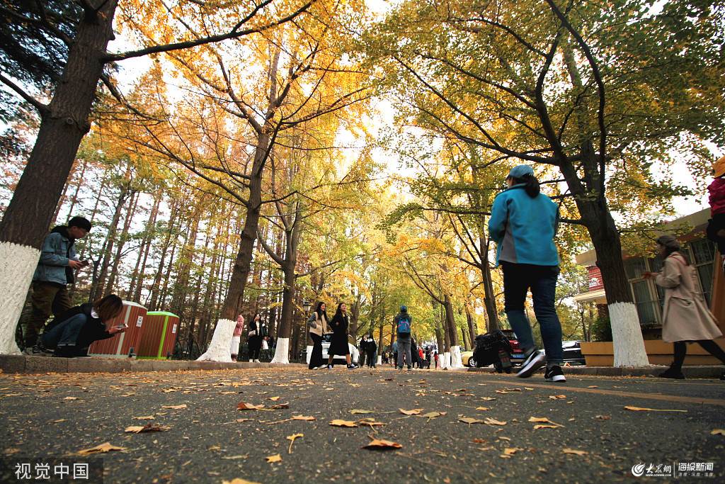 青島八大關(guān)銀杏葉泛黃如童話世界 引大批游客來“賞秋”
