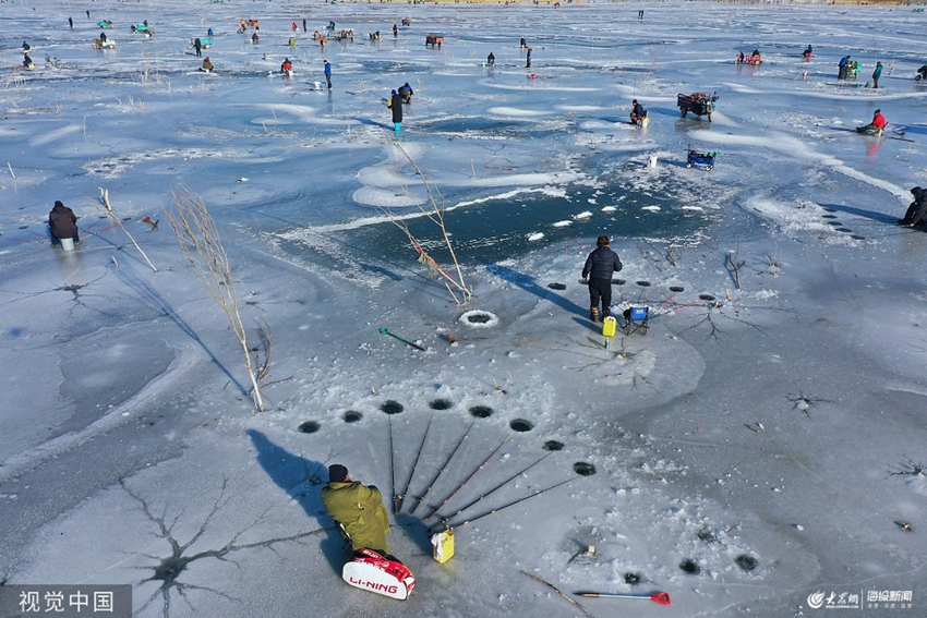 北京:釣魚愛好者破冰釣魚 享受冬日樂趣