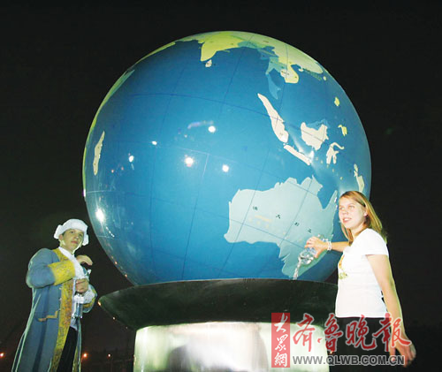 9日晚上9時(shí)許,在濟(jì)南植物園舉行的2006中國(guó)濟(jì)南國(guó)際兒童聯(lián)歡節(jié)閉幕儀式上,濟(jì)南市委副書(shū)記、濟(jì)南市長(zhǎng)鮑志強(qiáng)按下按鈕,由黃河等世界9條“母親河”匯聚在一起的“水·地球”緩緩啟動(dòng)。