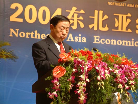 大眾網10月8日威海訊 今天,2004東北亞經濟合作論壇在威海隆重開幕。圖為山東省省長、論壇組委會主席韓寓群主持論壇開幕式。(特派記者 曲濤 報道) |