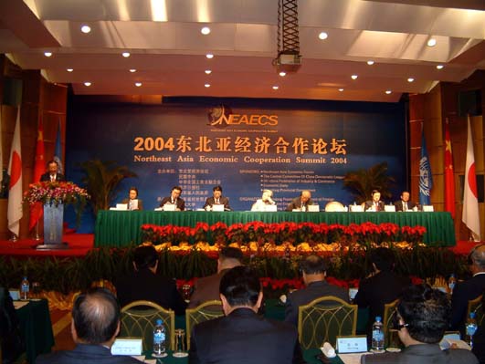 大眾網(wǎng)10月8日威海訊 今天,2004東北亞經(jīng)濟(jì)合作論壇在威海隆重開幕。圖為論壇開幕式現(xiàn)場(chǎng)。(特派記者 曲濤 報(bào)道) |