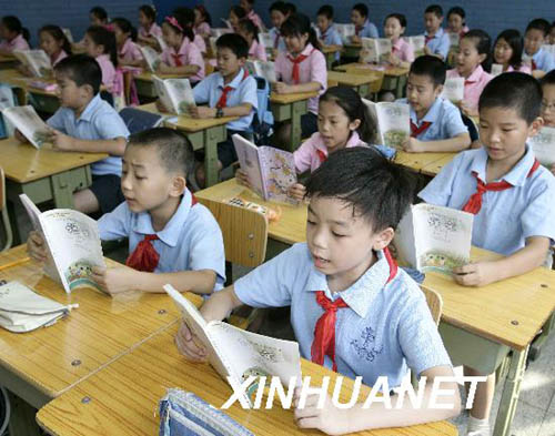 資料圖片:2007年9月1日,北京中關(guān)村三小四年級10班的學生在開學當日溫習功課。當日,北京市近120萬中小學生迎來新學年。新學期開始,在北京市城八區(qū)公辦學校義務(wù)教育階段學校就讀的、具有本市戶籍的學生將免交雜費,城八區(qū)內(nèi)農(nóng)村戶籍的學生還同時免交教科書費。由于此前北京市農(nóng)村地區(qū)義務(wù)教育已執(zhí)行免收雜費的規(guī)定,北京市將實現(xiàn)義務(wù)教育階段雜費全免,惠及學生的總數(shù)接近90萬人。新華社記者 陳建力 攝