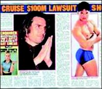 和A片男星查德·史萊特結婚12年、去年1月離婚的女子克里斯蒂娜,近日向美國《國家詢問報》沉痛控訴:“我丈夫和我的婚姻都輸給了湯姆·克魯斯!”而新出爐的美國《明星報》也專題報道“湯姆·克魯斯是不是GAY”,因為這個問題的答案至少價值1億美元。 兩周前,查德接受一家法國雜志采訪,自稱和湯姆·克魯斯有染,被克魯斯一狀告進法院,要求賠償1億美元。但后來查德又戲劇化改口,說從未見過克魯斯,還出示護照證明自己沒到過法國,如何接受那家法國雜志采訪?