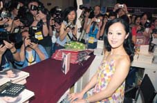 章小蕙昨日為她的舊書簽名促銷,對于記者連珠發炮的提問,她一概不答,并透過助手向在場記者取名片,表示會私底下回復。
