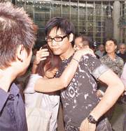 臺灣唱片公司高層李亞明為康仔灑上碌柚葉水。