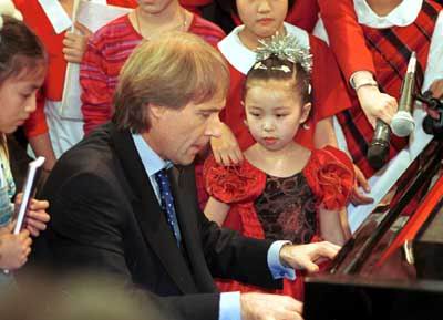 為了感謝熱情的中國聽眾,克萊德曼現場演奏了他最著名的鋼琴曲《秋日私語》等曲目。發布會現場的來賓和全體記者都為之沸騰起來。數十架照相機和攝像機將克萊德曼團團圍住,除了扛著“長槍大炮”的記者,里面有一半都是舉著傻瓜照相機和微型攝像機的樂迷。為了搶到克萊德曼的鏡頭,人們差點把鋼琴擠倒了,主辦方不得不調動了20余名保安維持秩序。可是樂迷們,甚至小孩子們卻更加爭先恐后地涌向克萊德曼,就連發布會現場的二樓上都擠滿了他的忠實樂迷。克萊德曼顯然被意想不到的熱情所震驚了,他邊彈琴邊抬頭對人們不好意思地微笑。一曲未完就有小琴童飛快地跑過去為他獻花、要簽名,并給了他最熱烈的擁抱,而他優美流暢的音樂更贏得了大家經久不息的掌聲。 |