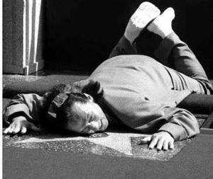 成龍趴在自己的星形名牌上