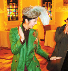 楊千嬅昨天鮮綠欲滴,上身翠綠外套,下身淡綠休閑褲。在各類香港搞笑片里已逐漸確立個人風格路線的她,現實中一樣的招人喜愛。說起自己以前當護士時打抱不平的“事跡”,眉飛色舞,手腳并用。提及愛情,卻顯出絲絲無奈,笑言由于目前兩手空空,所以只能在戲里體驗浪漫神話的感情。