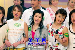 左圖:容祖兒等歌手在晚會上高歌一曲