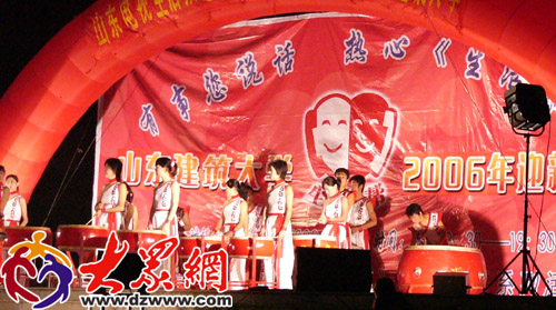 2006年9月23日,山東建筑大學在和平校區(qū)舉辦了2006級迎新晚會。特邀請了濟南電視臺“生活幫”節(jié)目組共同參與,節(jié)目現(xiàn)場熱情高漲,載歌載舞,體現(xiàn)了社會主義新時代大學生的新風貌!
