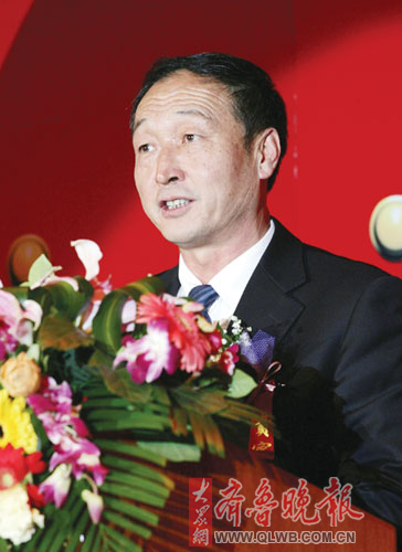 許振超在齊魯晚報創(chuàng)刊20周年答謝酒會上致詞。
