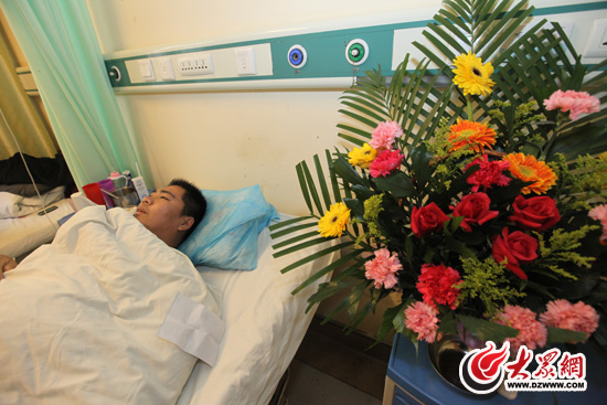 今天,大眾網記者再次來到醫院,看望好司機李國強,向他捎去數萬網友對他的祝福和敬意。在病房里,每個角落里都堆滿了市民和網友送來的鮮花,整個病房洋溢著花香。據國強說,這幾天,有數不清的愛心市民和網友自發來到醫院看望慰問他,因為看望他的市民太多了所以他記不全,但是其中印象最深的是一名不愿 透露姓名的男士。