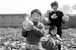 4月23日,小朋友幫菜農收菜。不少濟南市民得知菜農困難后主動幫忙。