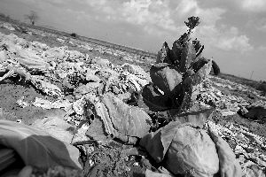 4月23日,濟南唐王鎮司家村,菜農韓成祥家地里大片開花的卷心菜,沒收割就被犁掉了。