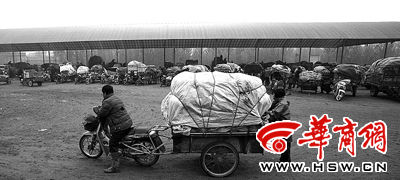 4月21日,濟南市歷城區(qū)唐王鎮(zhèn)司家莊村頭的蔬菜批發(fā)市場上,三十余輛三輪摩托滿載卷心菜等待菜販收購,當(dāng)日菜價跌到每斤0.22元