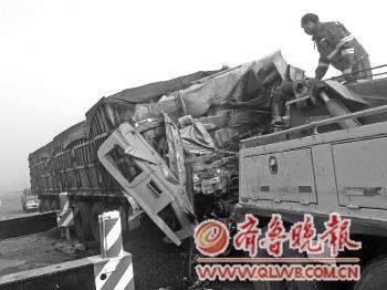 本報濟寧1月13日訊(記者 范少偉) 12日早晨6點左右,在濟寧城區(qū)東外環(huán)北段,一輛拉煤的掛車與裝水泥的罐車發(fā)生追尾事故,掛車駕駛室嚴重撞毀,所幸人員受傷不嚴重。濟寧交警支隊高新區(qū)勤務大隊工作人員反映,因大霧天氣,當天上午7點半到9點半兩個小時內,接到車輛追尾的交通事故比平時多三四倍。