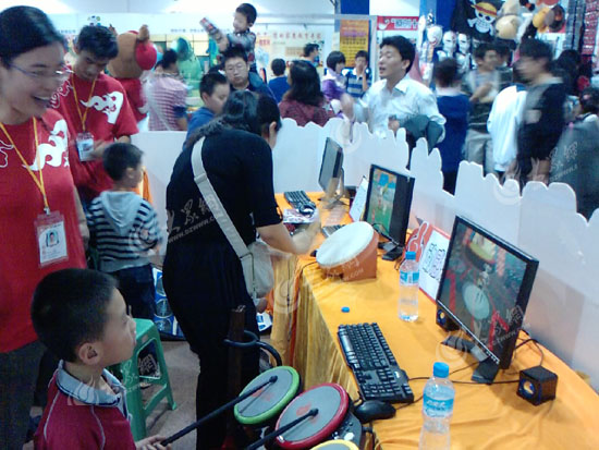 上午9點,山東省科技館門前已經(jīng)排起了幾條長長的隊伍,賣票的、進場的、參加活動的,每個人臉上都充滿了期待。在一樓展廳,隨處可見打扮成動漫人物的動漫迷們,他們在參觀這種穿梭不時有人和他們拍照留念;在現(xiàn)場,很多高科技的動漫裝備也與觀眾見面,尤其是與電腦對戰(zhàn)的電子設(shè)備前,很多小朋友在排隊體驗;不少展臺還準(zhǔn)備了動漫商品供參觀者選購。帽子、書包、寶劍等等,玲瑯滿目。