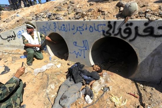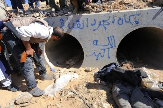 - 卡扎菲身藏下水道命喪家鄉(xiāng) 尸體運往米蘇拉塔