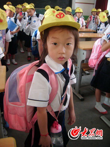 [提要] 在今天報到的小學一年級學生中,除了稚嫩的面孔、害羞的表情、充滿好奇的眼神,最吸引記者的,還有孩子們身上背的大大的書包。