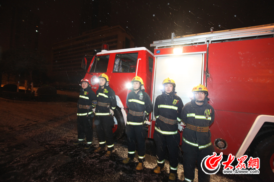 濟南市公安局消防支隊17中隊消防人員準備就位。
