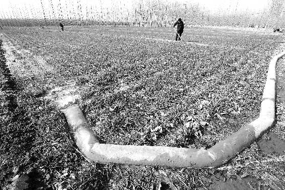 2月6日,在菏澤鄆城縣丁里長鎮張莊村麥田地里,村民們正在忙著抽水澆地。截至目前,全市已投入抗旱資金1.45億元,最高投入抗旱勞力57.7萬人,動用泵站521處、機動抗旱設備12.7萬臺套,澆灌農田420萬畝,累計澆水面積810萬畝次。