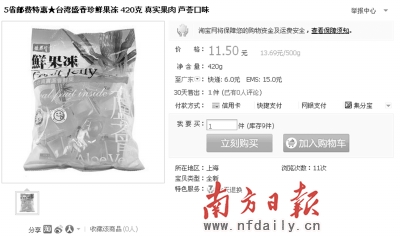 經(jīng)過(guò)走訪,廣州家樂(lè)福、華潤(rùn)萬(wàn)家、百佳、好又多內(nèi)都沒(méi)有“悅氏運(yùn)動(dòng)飲料”銷售。然而,記者卻在淘寶商場(chǎng)中發(fā)現(xiàn)部分店鋪仍然在銷售已被證實(shí)遭到塑化劑污染的盛香珍果凍。